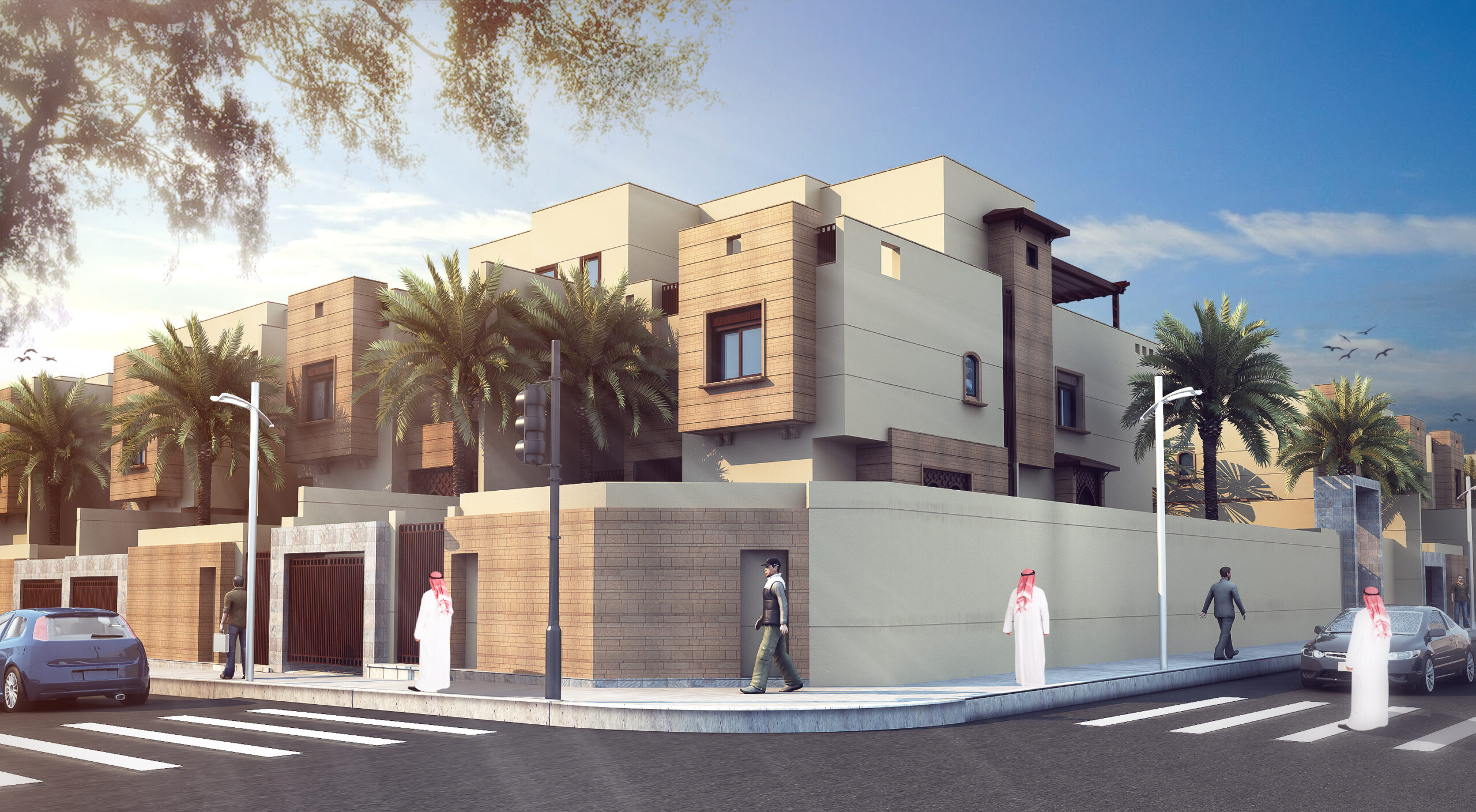 - تم إعطاء الطابع العربي المعاصر لواجهات الفيلات لتتماشي مع طبيعة المكان و الزمان .