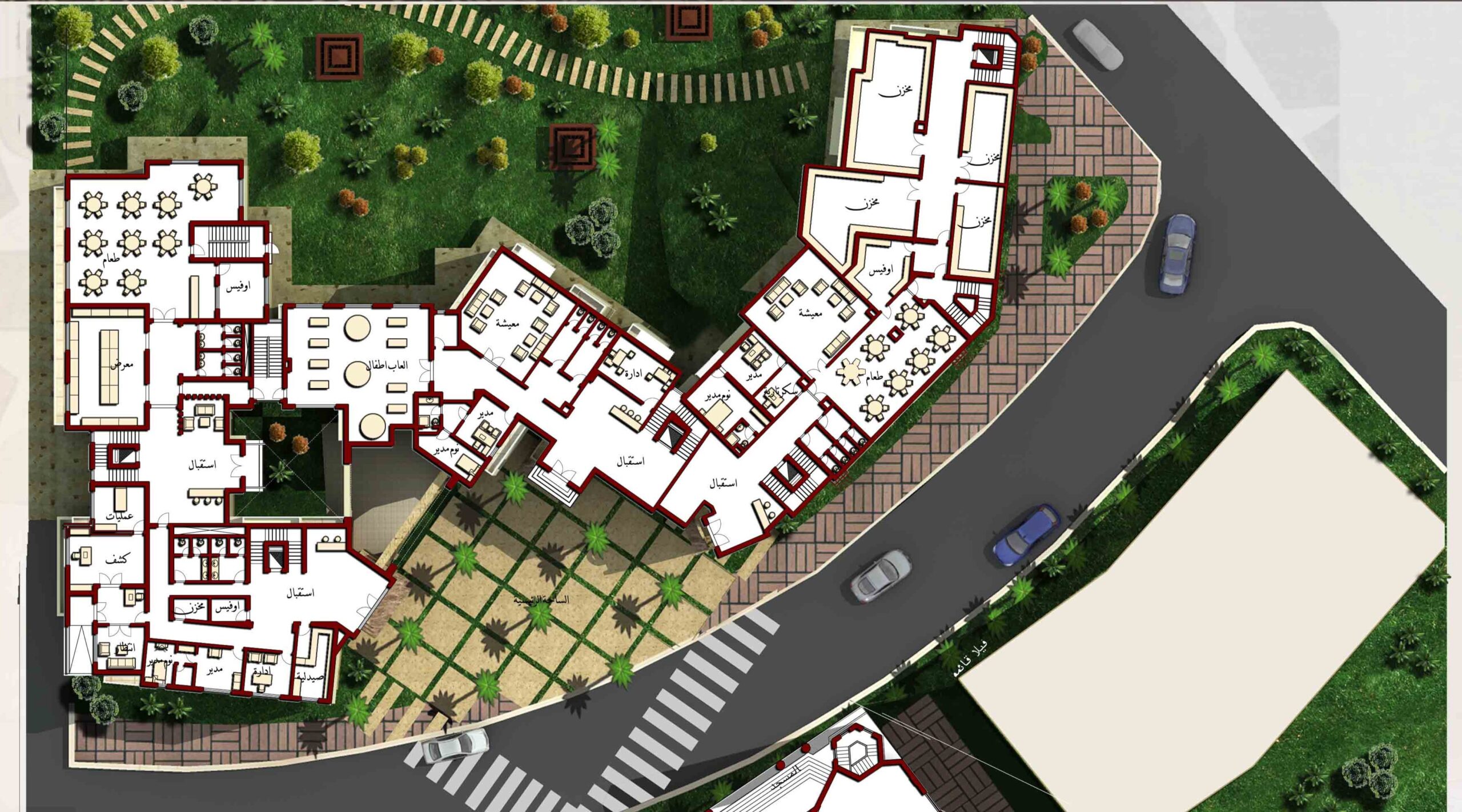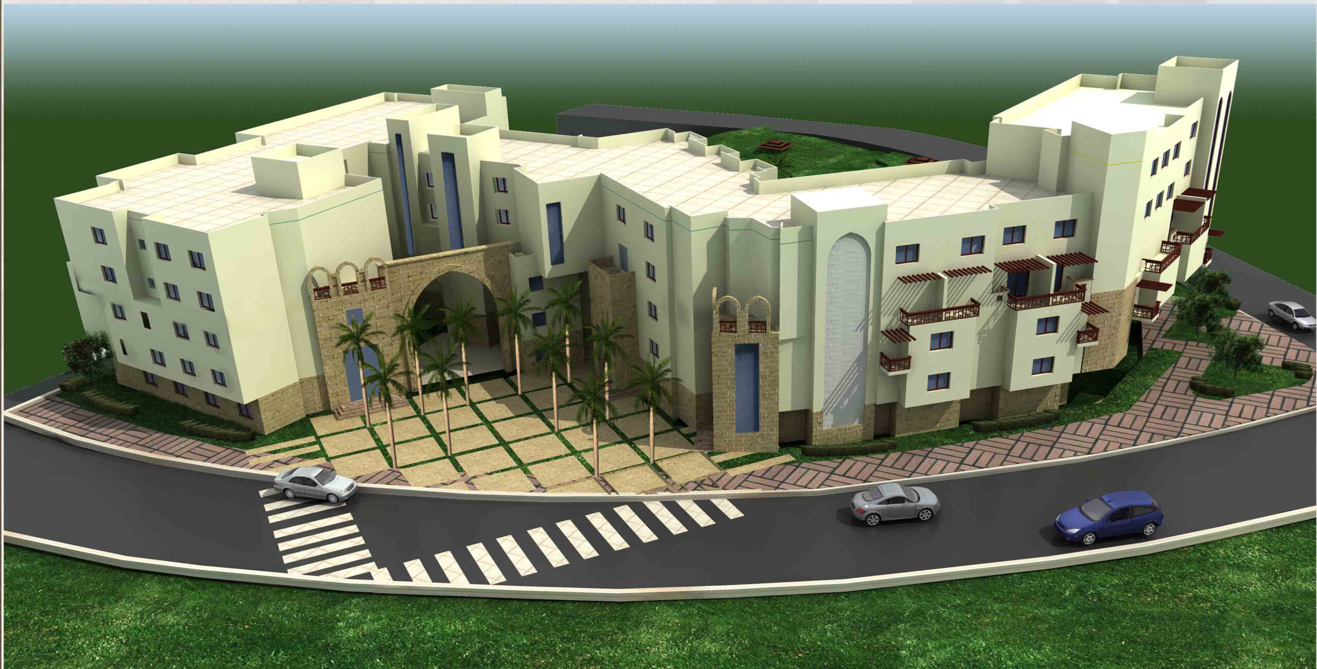 The final phase of the construction of Al-Bakeyt Al-Salehat complex at Al- Mokattam, Cairo has been Completed. The project plays a societal role as it consists of several element including a community nursing center for old people who suffer from alzheimer, Dorms for children coming from outside Cairo, clinics and pre-professional preparation center for girls. The design creates spaces and green areas integrating with the buildings, the front piazza is opposite to the mosque and can be used in specific events. Since the building itself is the fence as well, the green areas left will increase the width of the road.