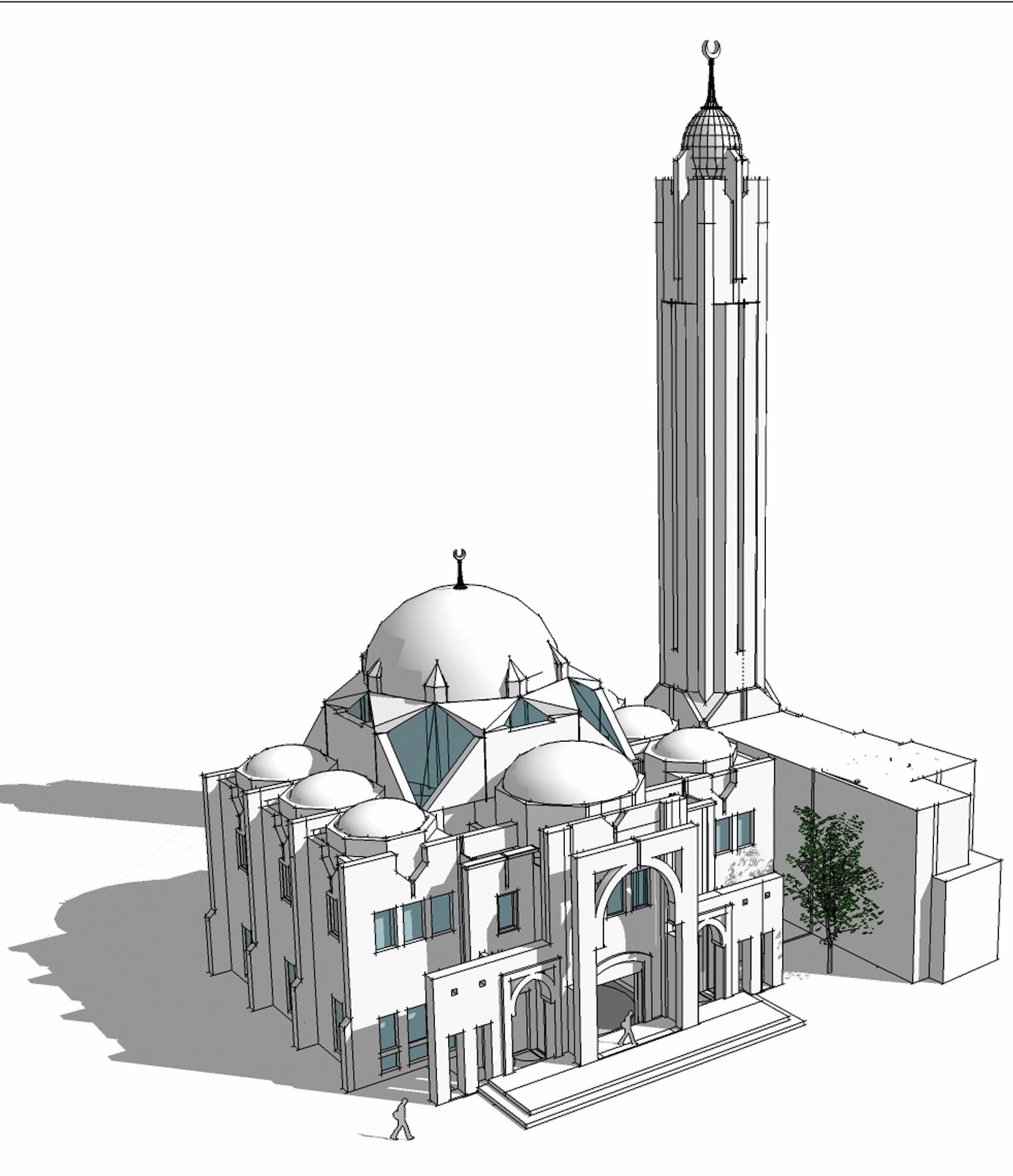 The project is located at 6th October City in front of Mubarak technology and science city, characterized by serial uniform white buildings with blue glass curtain walls. That image framed the overall look of our mosque that matches the white mass with blue windows but in much more distinctive mass. This mass represents geometrical strong structural elements such as pillars, Beams and Composed dome form separated from Beams by glass squinshes in a new skylight treatment and the minaret keeps the feeling of superiority matched with the building style. The plan of the mosque is a traditional one that boosters circulation, privacy and ergonomics