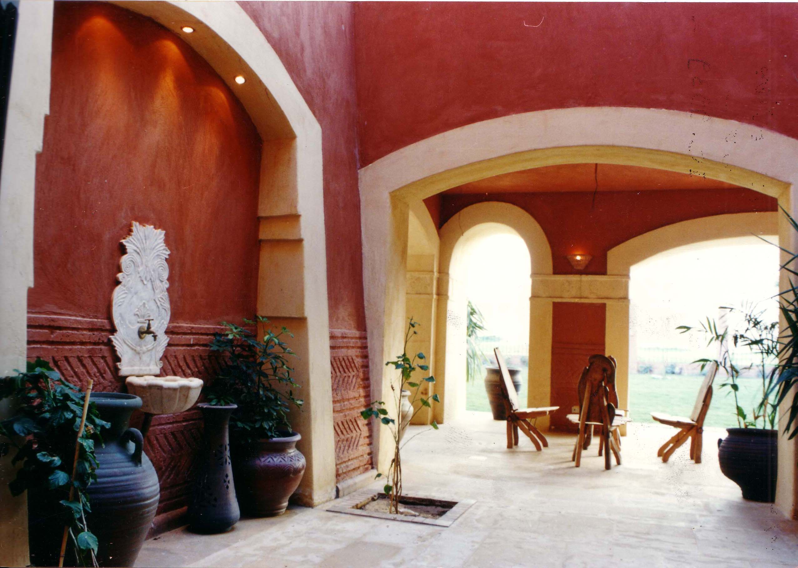 - Located in the historic area of Sakkara, the design of this villa reflects the owner’s desire for a style that harmonizes with its surroundings. Elements from Andalusian architecture, such as the planetarium feature at the main entrance, marble flooring, and the distinctive wooden handrail on the staircase, evoke the region’s rich history. At the same time, modern touches were introduced into the family bedrooms, ensuring a balance of tradition and contemporary living.