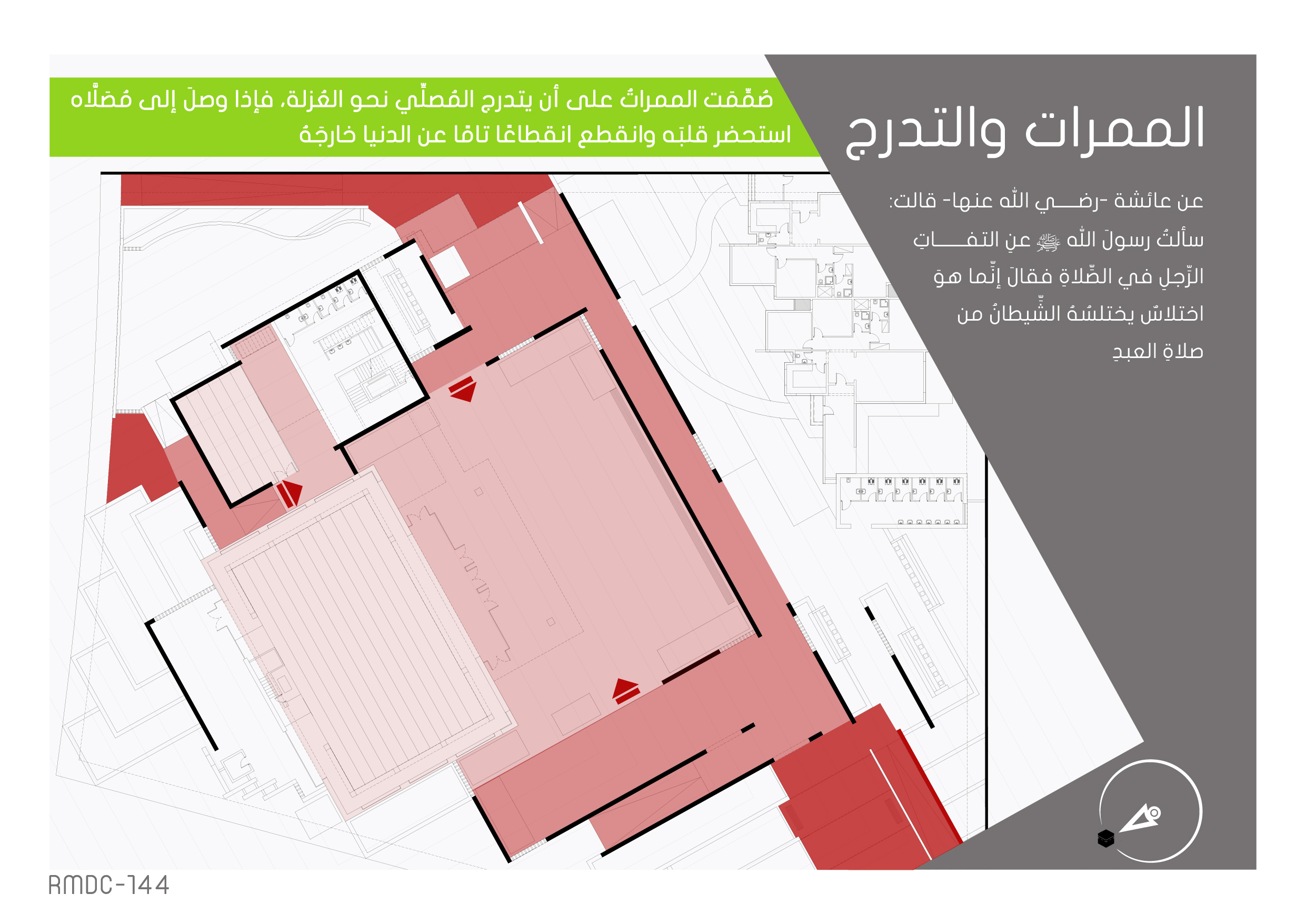 - To enhance openness, internal columns are minimized, and circulation paths are seamlessly integrated to support smooth movement, especially during peak times like Friday and Eid prayers.